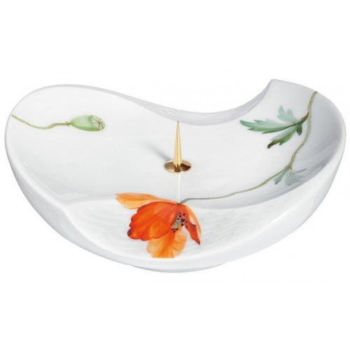 Подсвечник, форма "волна рельеф игре", цветы роспись "Дикий Мак", красный, белый он краем, H 6 см