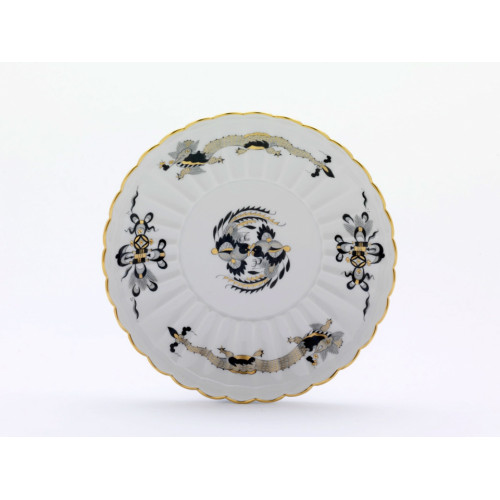 Гарнир чашки со скидкой круглый,gemuschelt, форма "Новый вырез", Богаче дракон, черный, золотой чате, золотые края, ø 16,5 см