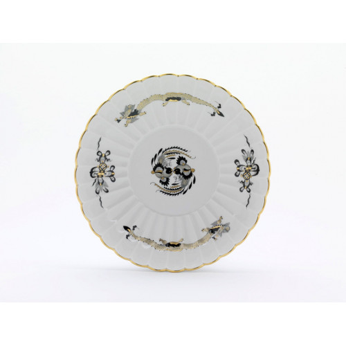 Гарнир чашки со скидкой круглый,gemuschelt, форма "Новый вырез", Богаче дракон, черный, золотой чате, золотые края, ø 20 см