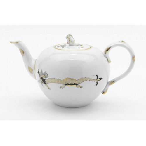 Чайник заварочный, форма "Новый вырез", Богаче дракон, черный, золотой чата со скидкой, золотой каймой, V 1,25 л