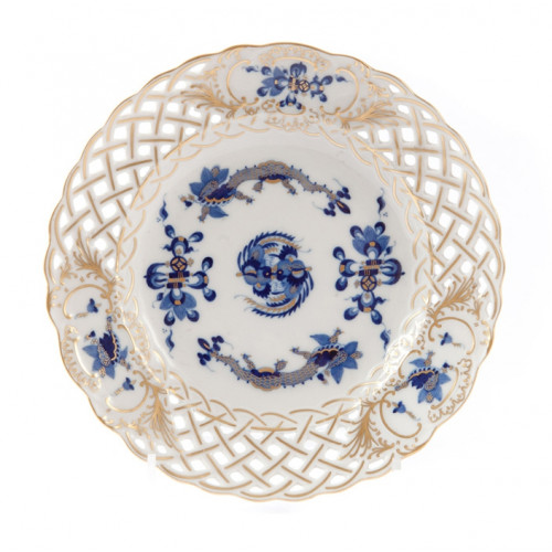 Тарелки, durchbr., Богатый дракон, кобальт синий со скидкой, Золотая чате, золотой край золото и бутафория, ø 15 cm