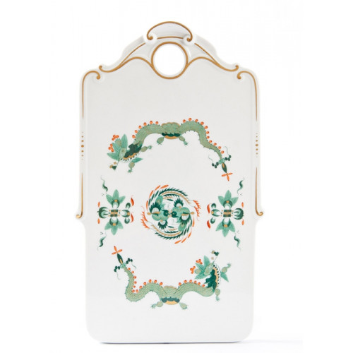 Хлеб доска, форма "Новый вырез", Богаче дракон, grün, красные и золотые чата со скидкой, золотой каймой, L 25 см