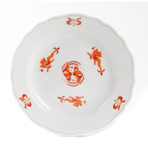 Тарелок, форма "Новый вырез", дракон узор, легкий, красный, Серый нить, ø 18 см
