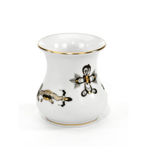 Ваза, форма "Новый вырез", Богаче дракон, черный, золотой со скидкой чате, золотой каймой, H 6 см