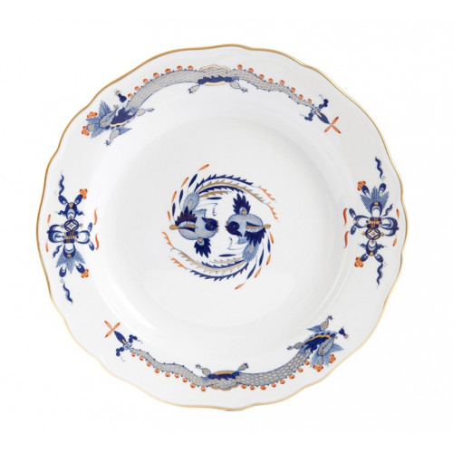 Тарелок, форма "Новый вырез", Богаче дракон, синий кобальт, красный и золотой чата со скидкой, золотой каймой, ø 22 см