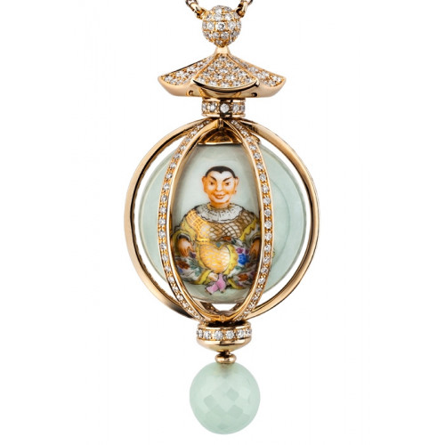 750 Roséзолото 22,2 г, 314 wei e бриллиантами 1,70 ct, 1 grüne нефрит-жемчуг, ручной росписью мейсенского фарфора®