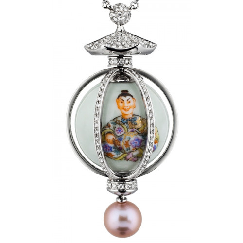 750 Wei золото 23,3 г, 302 wei e бриллиантами 1,62 ct, 1 розовый Sü воды-жемчужина, ручной росписью мейсенского фарфора®