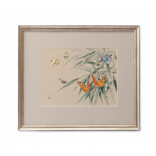 Кожаные изображения, 6 бабочек с Bl—минималистичный, красочно кожа на кожа, 41 x 47 см