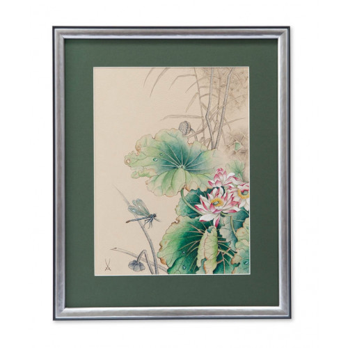 Кожаные изображения, водяные растения, стрекоза, красочный, графический Ausf–внедрение, кожа на коже, 54 х 44 см