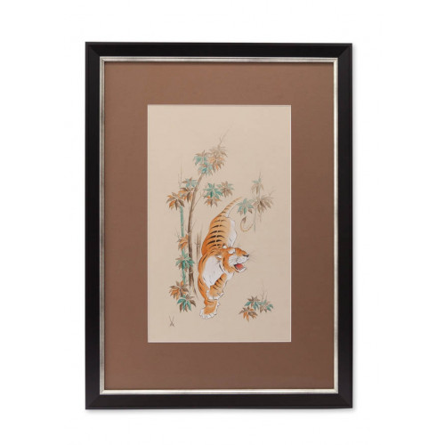 Кожаные изображения, тигр с бамбуком, желтая охра, кожа на коже, 77 х 57 см