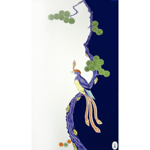 Панно, индийские фазан узор, кобальт синий фонд, wei он края, 72 x 42 см