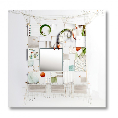 Панно, ковры в grün (с пластически Ящерица), зеркало, 45 x 45 см