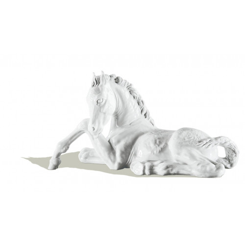 Kunst lebt vom Überwinden der Konvention – und dann wieder davon, zu ihr zurückzukehren. Das könnte das Motto des aus Karlsruhe stammenden Bildhauers, Grafikers und Malers Willy Münch-Khe gewesen sein, dessen Modellentwürfe aus der ersten Hälfte des 20. Jahrhunderts zum festen Bestandteil unseres Sortiments gehören. Münch-Khe war ein Grenzgänger zwischen den Stilen und Ausdrucksformen, innovativ, rätselhaft und vielseitig. 1912 und 1913 schuf er Gefäße und Gefäßdekore zwischen Jugendstil und Art Déco. In den 1920er Jahren überraschte er uns mit literarischen Figuren, die zu den besten ihres Genres zählen – und ab 1928 brillierte der exzentrische Künstler mit konventionell gestalteten Jungtierfiguren, die Ihre Kindheitserinnerungen an die heimisch-ländliche Tierwelt mit Sicherheit wieder lebendig werden lassen. Münch-Khe hat die „tapsige“ Art, mit der diese Geschöpfe in die Welt hineinstolpern, so pointiert festgehalten, dass sie unsere ganze Anteilnahme wecken. Seine Tiere sind insofern nicht nur erstklassig gestaltet und schön anzusehen, sondern sie rufen auch zu einem verantwortungs- und liebevollen Umgang mit ihren lebenden Vorbildern auf. Das Modell zum liegenden Fohlen schuf Münch-Khe um 1928. Es ist auch in Böttgersteinzeug erhältlich (86179).