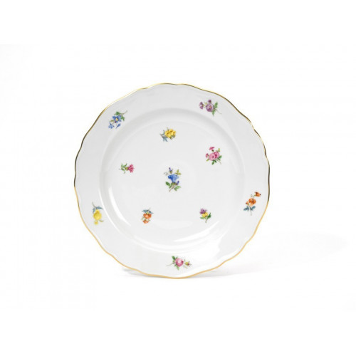 Teller, Form "Neuer Ausschnitt", Gestreute Blümchen, bunt, Goldrand, ø 22 cm