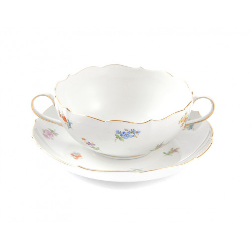 Suppentasse m.U., Gestreute Blümchen, bunt, Goldrand, V 0,35 l