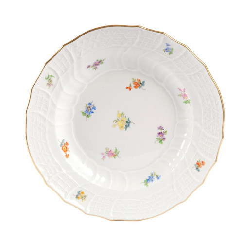 Teller, Gestreute Blümchen, bunt, Goldrand, 18,5 cm