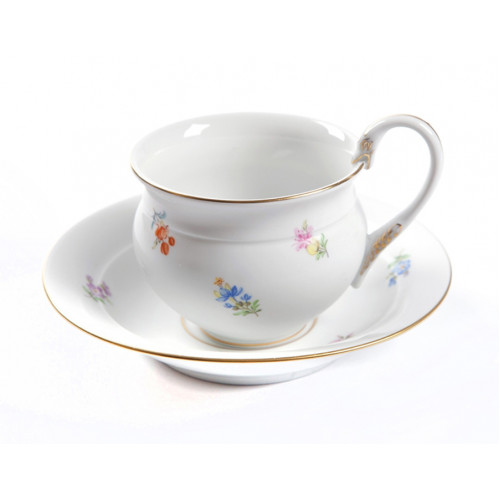 Kaffeetasse m.U., Gestreute Blümchen, bunt, Goldrand, 0,2 l