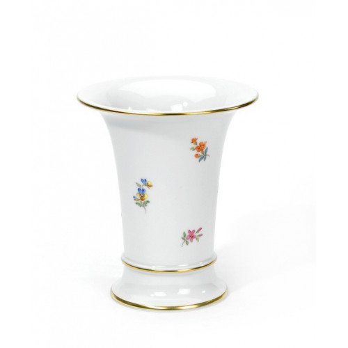 Vase, Form "Neuer Ausschnitt", Gestreute Blümchen, bunt, Goldrand, H 10,5 cm