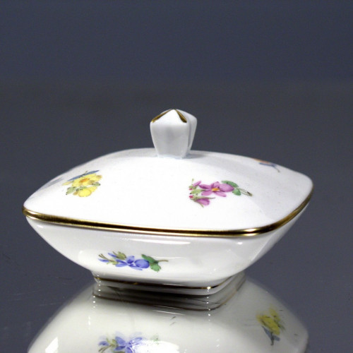 Dose, Gestreute Blümchen, bunt, Goldrand, 5,3 cm