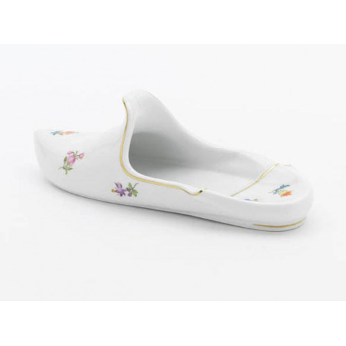 Pantoffel rechts, Gestreute Blümchen, bunt, Goldrand, L 17 cm