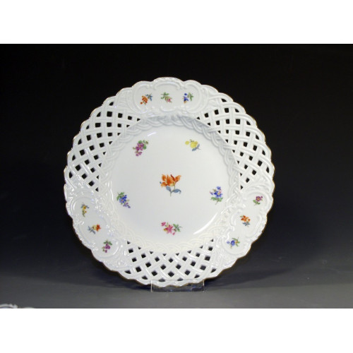 Teller, durchbr., Gestreute Blümchen, bunt, Goldrand, ø 24 cm