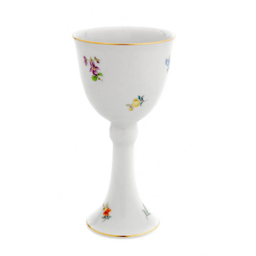 Weinbecher mit Stiel, Gestreute Blümchen, bunt, Goldrand