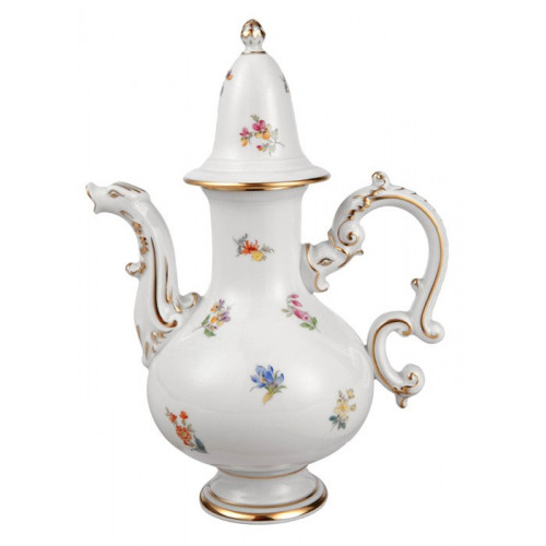 Kanne, Gestreute Blümchen, bunt, Goldrand, 0,9 l