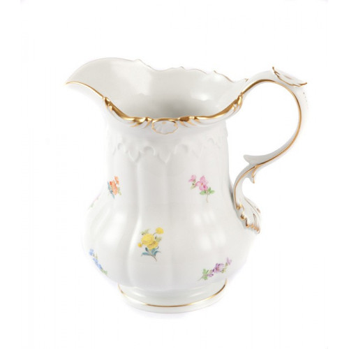 Milchkrug, Gestreute Blümchen, bunt, Goldrand, 0,5 l