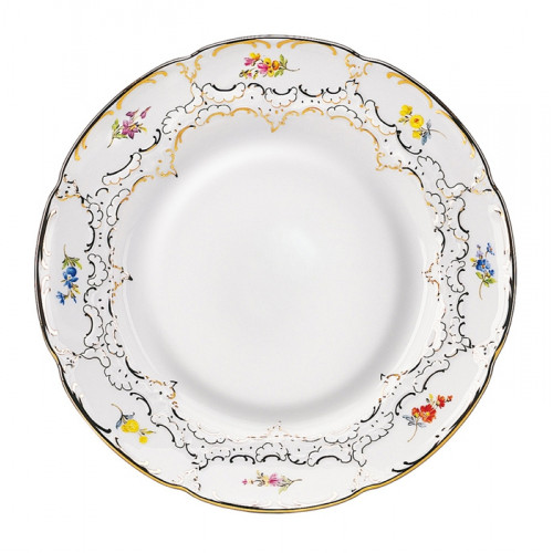 Suppenteller, Form "B-Form", Gestreute Blümchen, bunt, Gold angespitzt, ø 24 cm