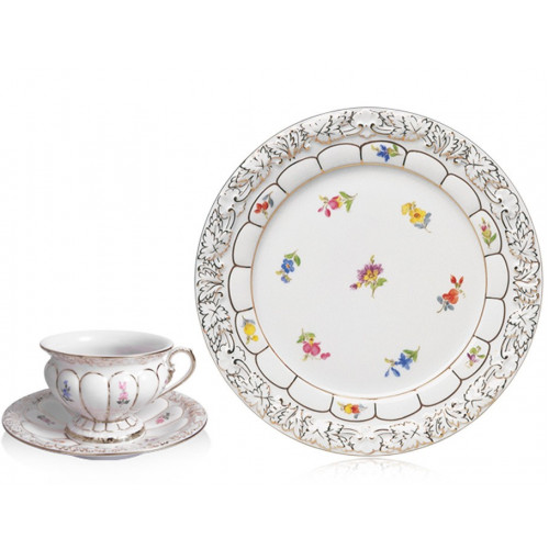 Kaffeetasse m.U., Gestreute Blümchen, bunt, Gold angespitzt, V 0,16 l