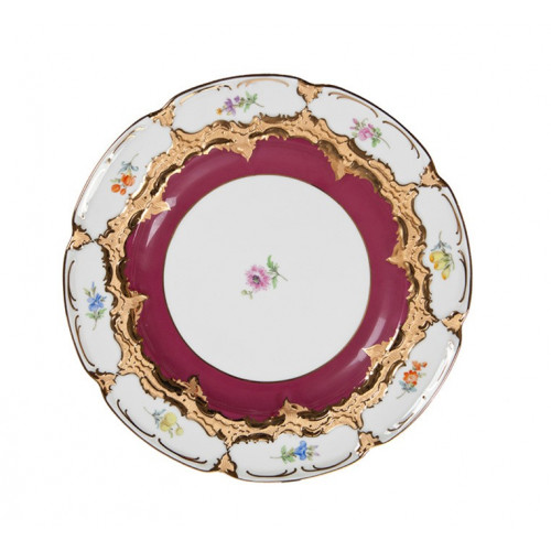 Speiseteller, Gestreute Blümchen, bunt, purpur glasiert, Goldbronze, leicht, ø 25 cm