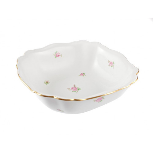 Schüssel, eckig, Gestreute Röschen, bunt, Goldrand, 29 cm