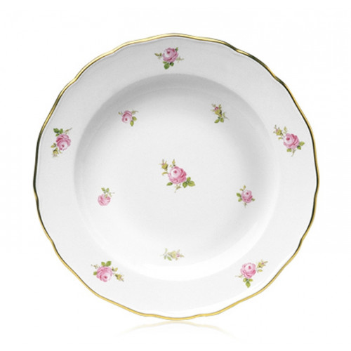Suppenteller, Form "Neuer Ausschnitt", Gestreute Röschen, bunt, Goldrand, ø 24 cm
