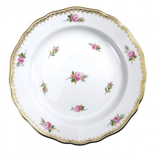 Teller, Gestreute Röschen, goldgravierte Blätter, Wiener Kante, gold, Goldrand, ø 18 cm