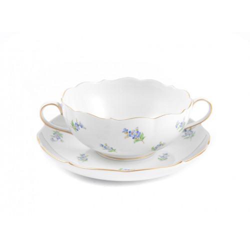 Suppentasse m.U., Gestreute Vergißmeinnicht, bunt, Goldrand, V 0,35 l