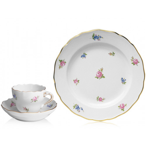 Espressotasse, Gestreute Röschen u. Vergißmeinnicht, bunt, Goldrand, V 0,1 l