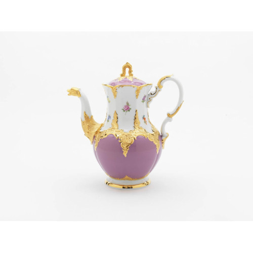 Kaffeekanne, Form "B-Form", Gestreute Blümchen, bunt, pink glasiert, Goldbronze, leicht, V 1,50 l