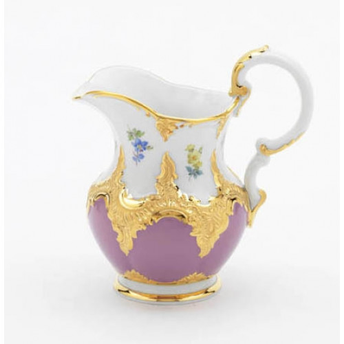 Milchkännchen, Gestreute Blümchen, bunt, pink glasiert, Goldbronze, leicht, V 0,18 l
