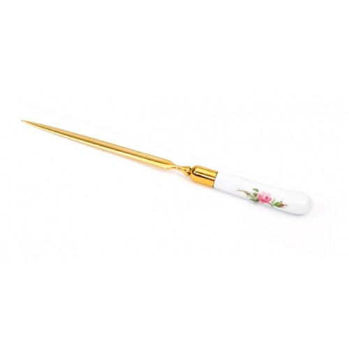 Brieföffner, Form "Neuer Ausschnitt", Rose mitte, bunt, weißer Rand,