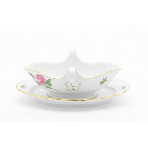 Sauciere, Form "Neuer Ausschnitt", Rose mitte, bunt, Goldrand, V 0,25 l
