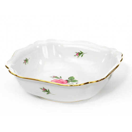 Schüssel, eckig, Form "Neuer Ausschnitt", Rose mitte, bunt, Goldrand, 29 cm