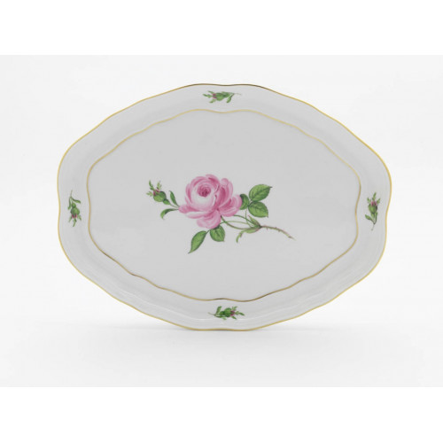 Platte, oval, Rose mitte, bunt, Goldrand, 34 cm