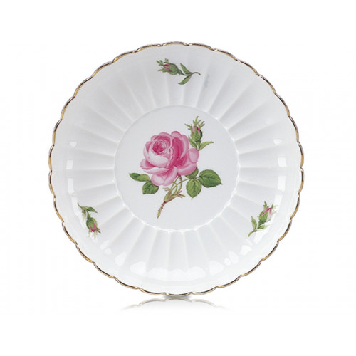 Beilageschale rund,gemuschelt, Form "Neuer Ausschnitt", Rose mitte, bunt, Goldrand, ø 20 cm