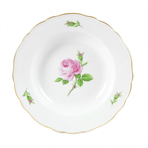Teller, tief, Form "Neuer Ausschnitt", Rose mitte, bunt, Goldrand, ø 19 cm