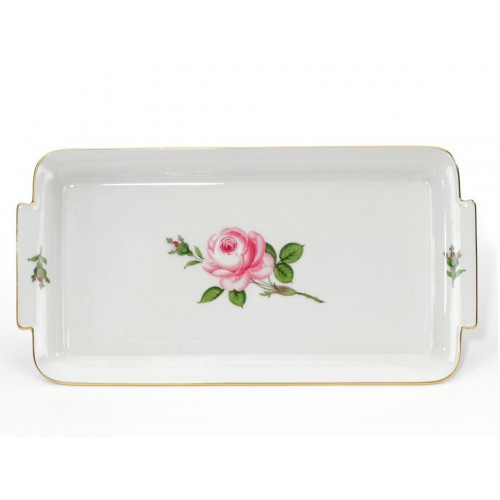 Platte,rechteck., Rose mitte, bunt, Goldrand, L 29 cm