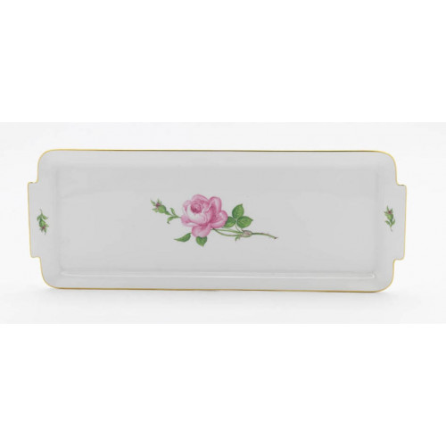 Platte,rechteck., Rose mitte, bunt, Goldrand, L 39 cm