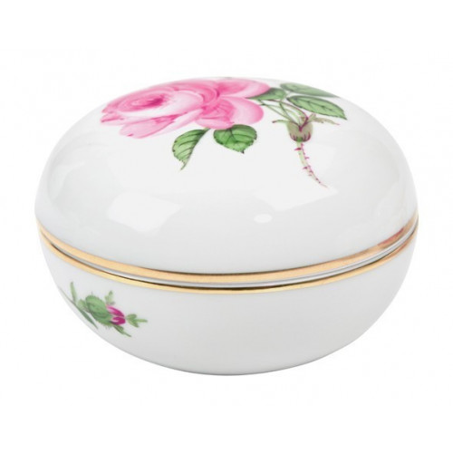Dose, Form "Neuer Ausschnitt", Rose mitte, bunt, Goldrand, ø 7,5 cm