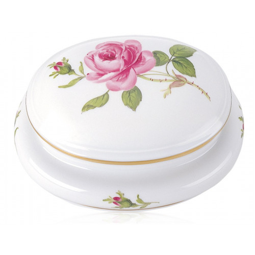 Dose, Rose mitte, bunt, Goldrand, L 12 cm