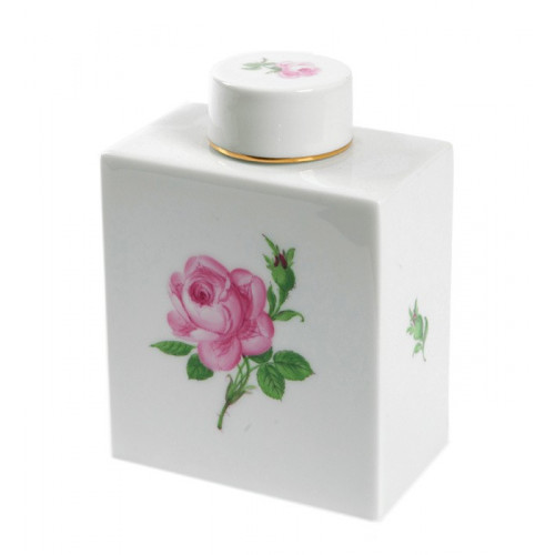 Teedose, Rose mitte, bunt, Goldrand, H 12,6 cm