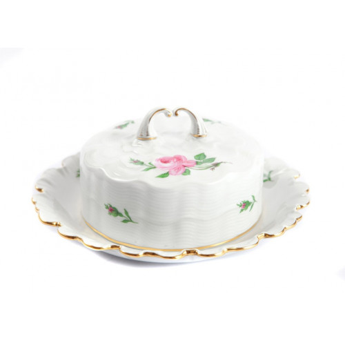 Butterdose, Rose mitte, bunt, Goldrand, 13 cm